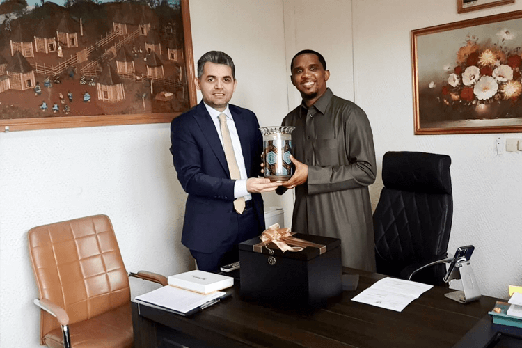 У нас состоялась теплая и дружеская встреча с господином Самюэлем Это’о, одной из звезд мирового футбола. Мы дарили друг другу подарки. Мы говорили о проектах, связанных с будущим африканского футбола. Скоро у нас будут хорошие новости.