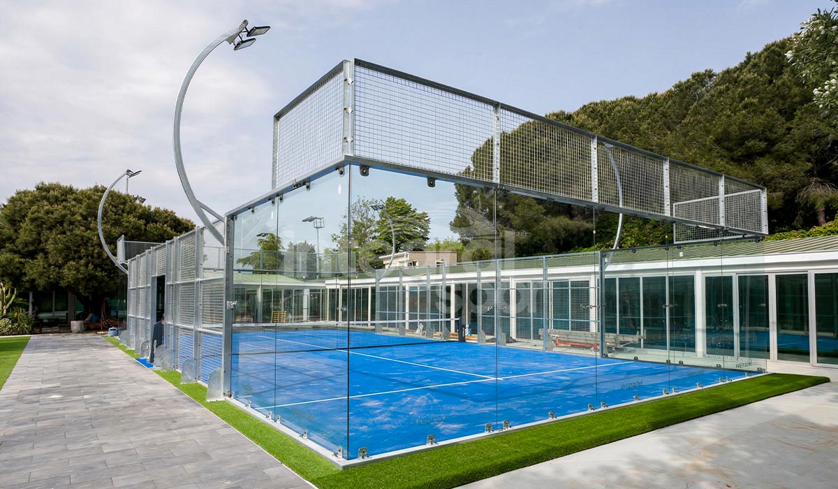 Благодаря панорамной стеклянной конструкции 360° обеспечивается непрерывный обзор на корте, а закалённые стеклянные панели и оцинкованная стальная конструкция гарантируют прочность и долговечность. Профессиональное покрытие для падел-корта обеспечивает оптимальный отскок мяча и комфорт игроков, позволяя использовать корт круглый год.